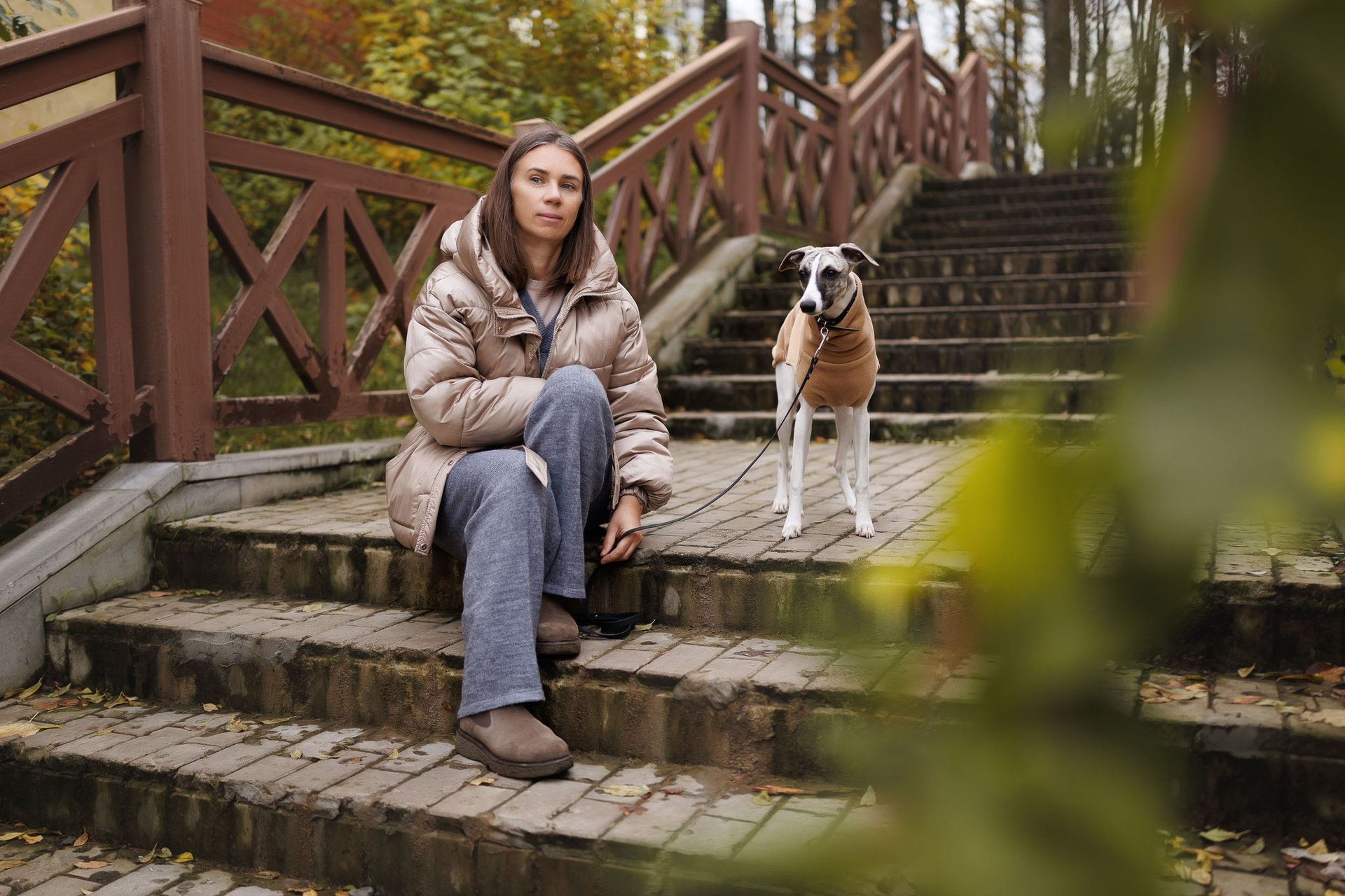 Елена и шелти Кирси в Ботаническом саду